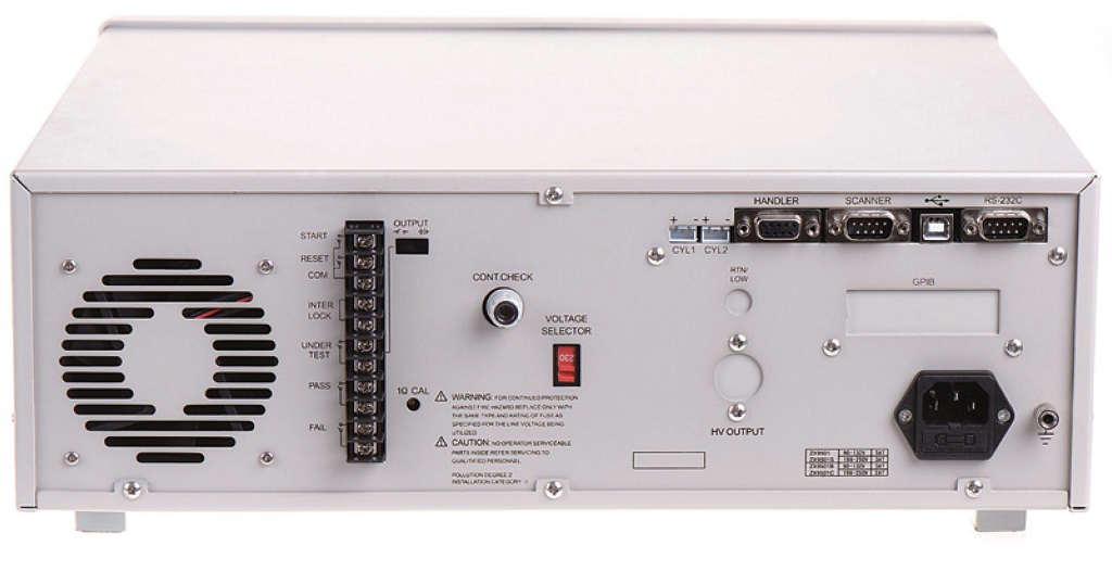 ZX9501絕緣耐壓測試儀可廣泛應用于電子元器件、家用電器、變壓器、儀器儀表、照明電器、電動工具、電熱器計算機、信息類整機的安規(guī)綜合測試儀。該系列儀器配備PLC接口、RS232C,并可選配RS485接口、USB device、USB Host、GPIB(選件),可方便地與PC進行數據通訊和遠程控制,以組建自動測試系統(tǒng)。