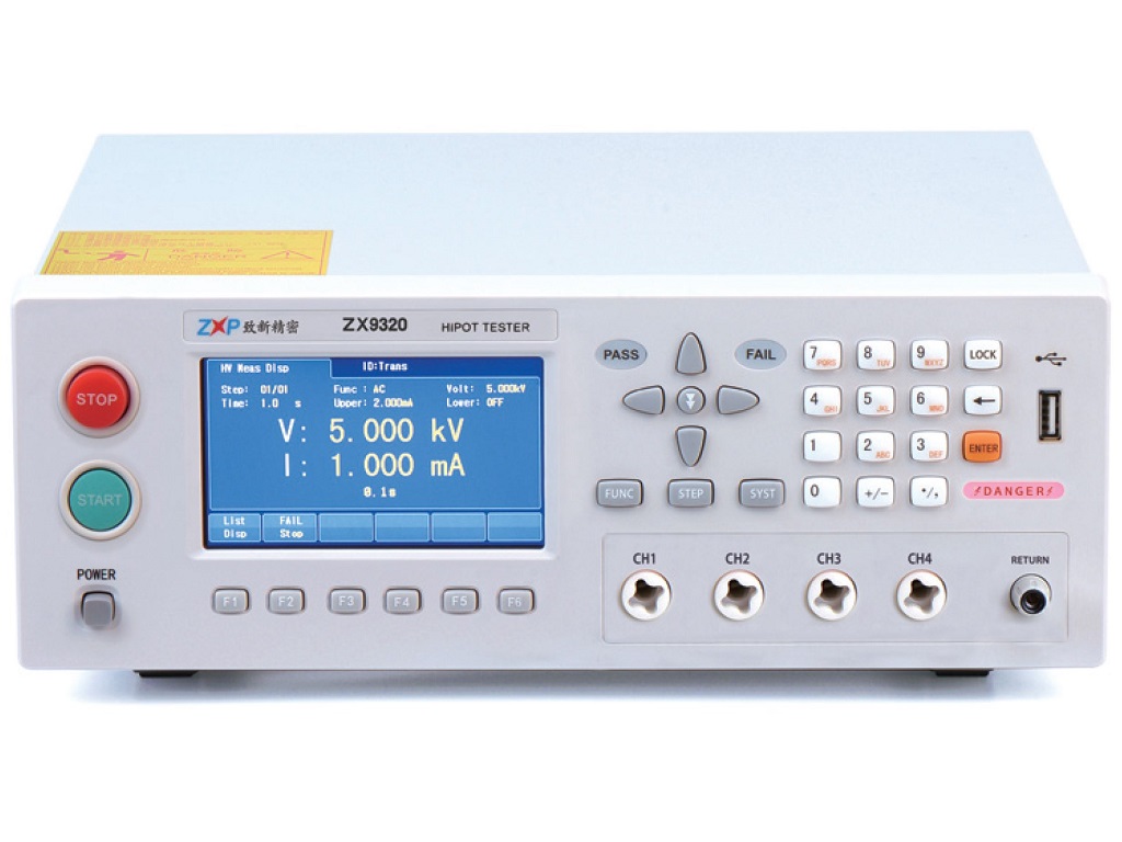●ZX9320S-4:交直流絕緣耐壓測試儀,最大交流電流20mA,帶4通道掃描接口