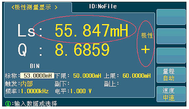 在極性測量界面,可設(shè)定:標(biāo)稱值,Ls 下限值,Ls 上限值,Q 下限值,Q 上限值,